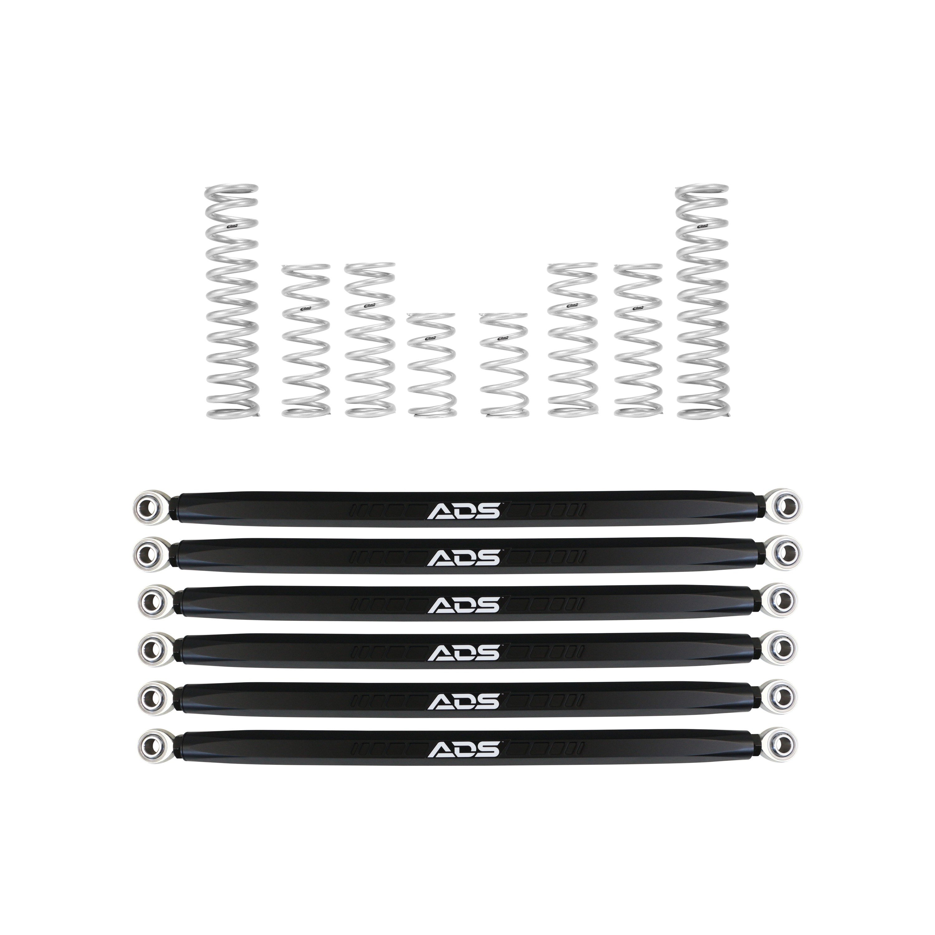 This ADS ESS DELTA suspension kit for the Can-Am Maverick X3 is a complete package that pairs a properly engineered dual rate spring system with a set of billet aluminum radius rods, improving how the machine rides and how the rear suspension holds up at the same time.