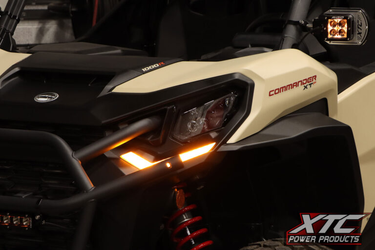 XTC® Power Products Leads the way in UTV Wiring Solutions. From our Plug and Play Product line comes our replacement Signature Series Turn Lights for the Can-Am Commander. The XTC Turn Signature Light Set replaces the factory accent light beneath the headlight. Ignition power activates the white running light same as OEM. The amber back light can be used as an accent running light or be connected to any XTC Turn Signal System to be used as a turn signal indicator.