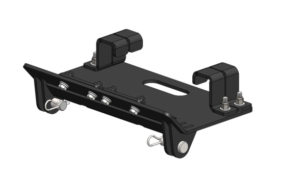 Mounting: Front-mount bracket made from ¼″ steel, attaches securely to Defender frame with Grade 5 hardware and clevis pins.