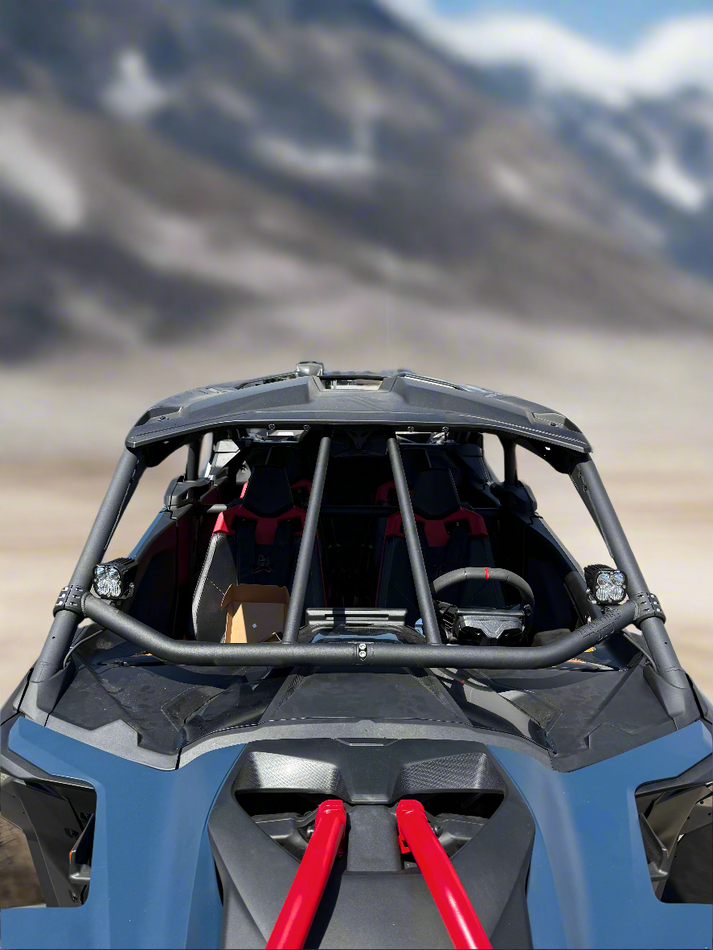 - Welded steel construction easily bolts to existing Can-Am Maverick R / Maverick R Max OEM Roll Cage.