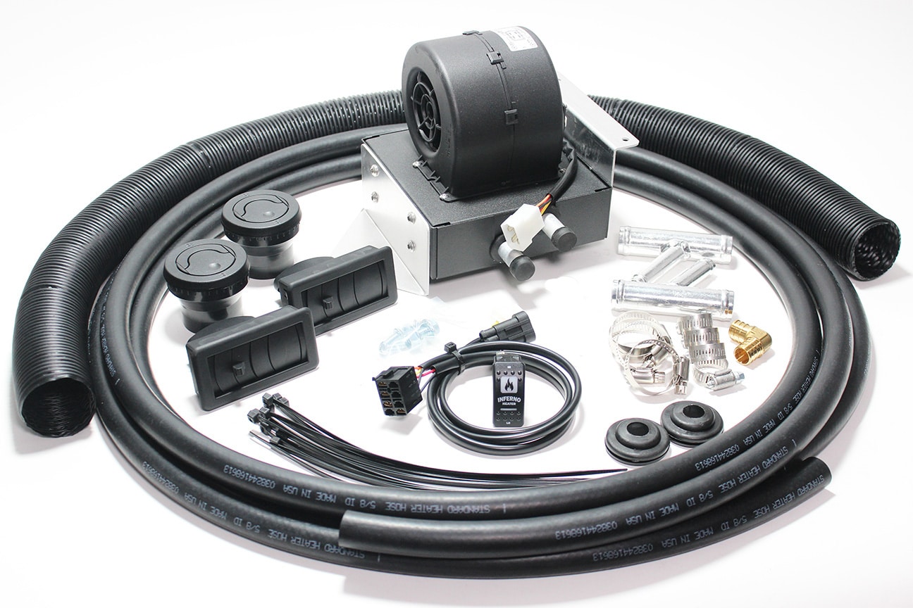- Includes all necessary components: heater hose, hose splicers, hose clamps, mounting brackets, defrost and floor louvers, ductwork & wiring.