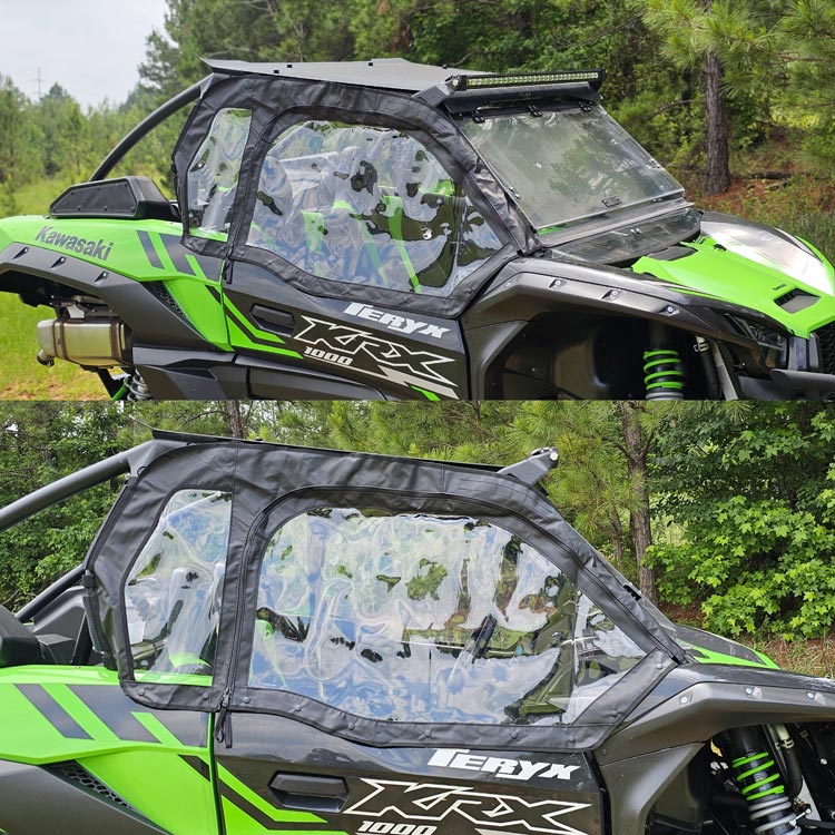 Give your Kawasaki Teryx KRX 1000 (2020–2026) better protection and comfort with the Falcon Ridge Soft Upper Door Kit. Crafted from professional-grade, marine-quality 11 oz polyester canvas, these doors are designed to resist water, punctures, tears, and abrasions.