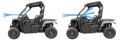 The VersaVent windshield also features a defog mode. No other windshield offers all these features. The vent is made of glass filled nylon, so it’s incredibly durable. The scoop on the front gathers up air off the hood and re-directs it to inside the vehicle so even at very slow speeds there is a surprising amount of air that can come through the vent. The design of the scoop and the gasket between it and the windshield keeps precipitation out while still allowing airflow in—as much or as little as either the driver or passenger desires.