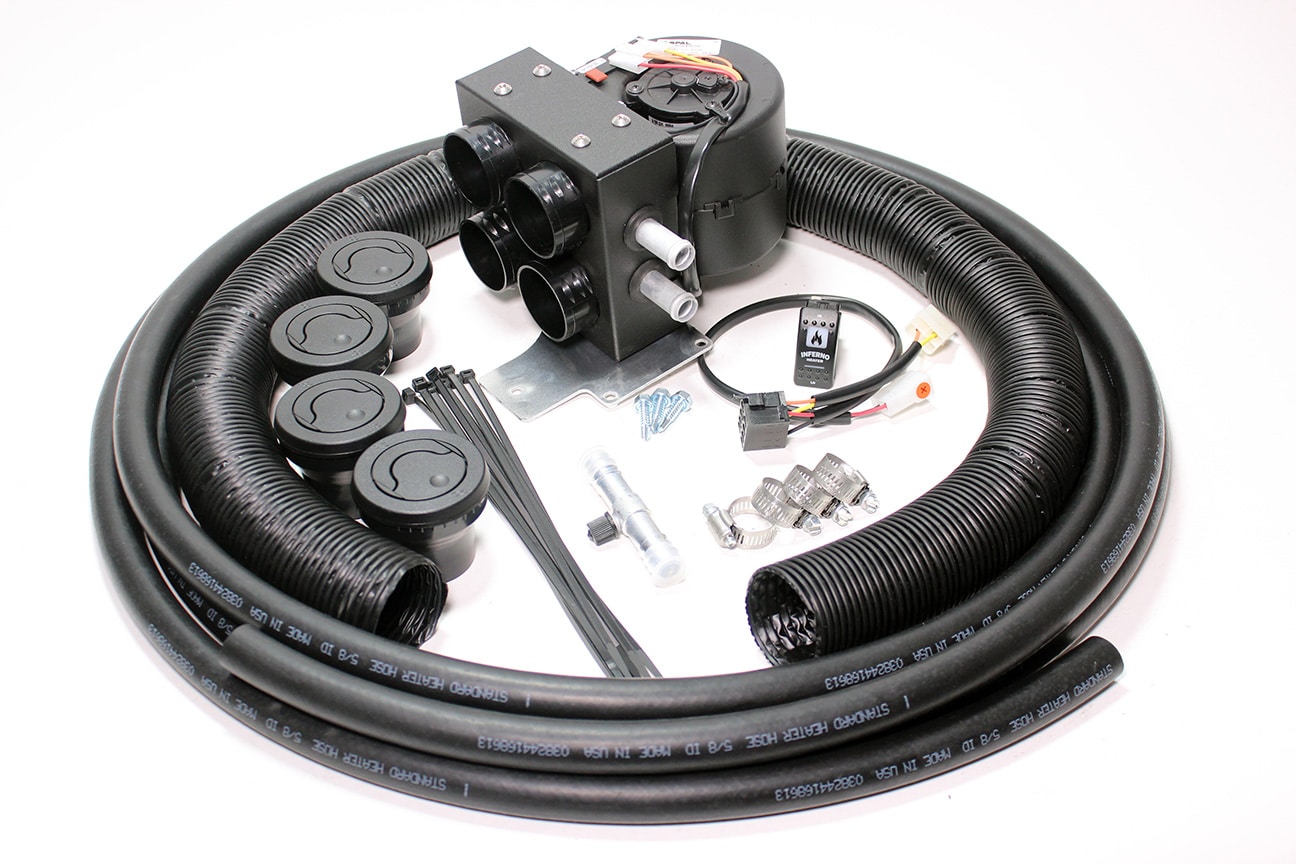 - Includes all necessary components: heater hose, hose splicers, hose clamps, mounting brackets, defrost and floor louvers, ductwork & wiring.