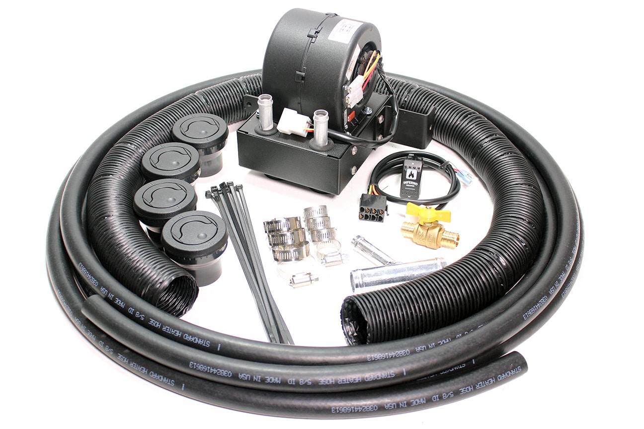 - Includes all necessary components: heater hose, hose splicers, hose clamps, mounting brackets, defrost and floor louvers, ductwork & wiring.