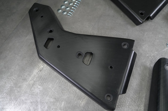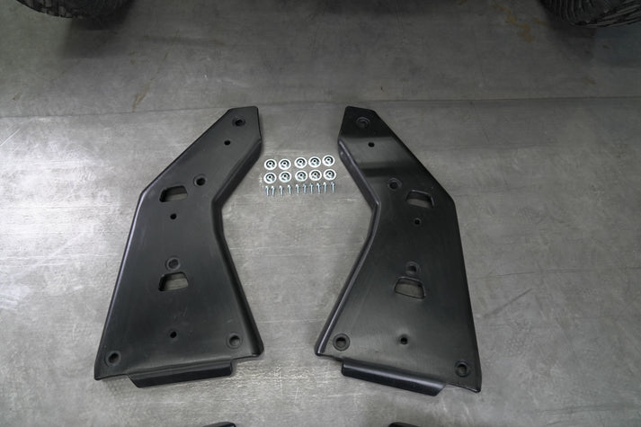 Factory UTV's Trailing Arm Guards for the Speed UTV offer the best in trailing arm protection. These guards feature a molded design for a secure fit and are constructed from sturdy 3/8 inch UHMW plastic, ensuring your trailing arms are shielded from rough and challenging terrain.