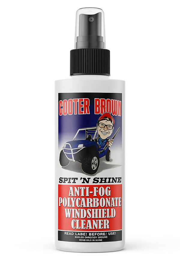 Cooter Brown Anti-Fog Polycarbonate Windshield Cleaner is a high tech blend of surfactant cleaners and protects your windshield in on easy step. Its advanced polymers repel rain, prevent bugs from sticking, eliminates finger prints, and leaves a finish unequal to other products. Its anti-fogging formula keeps polycarbonate windshields and clear increasing safety. It is safe for windshield surfaces including glass and polycarbonate (Lexan). Should be used in place of popular ammonia based cleaners that will cause damage to your polycarbonate windshield. Sold in four oz. bottles.